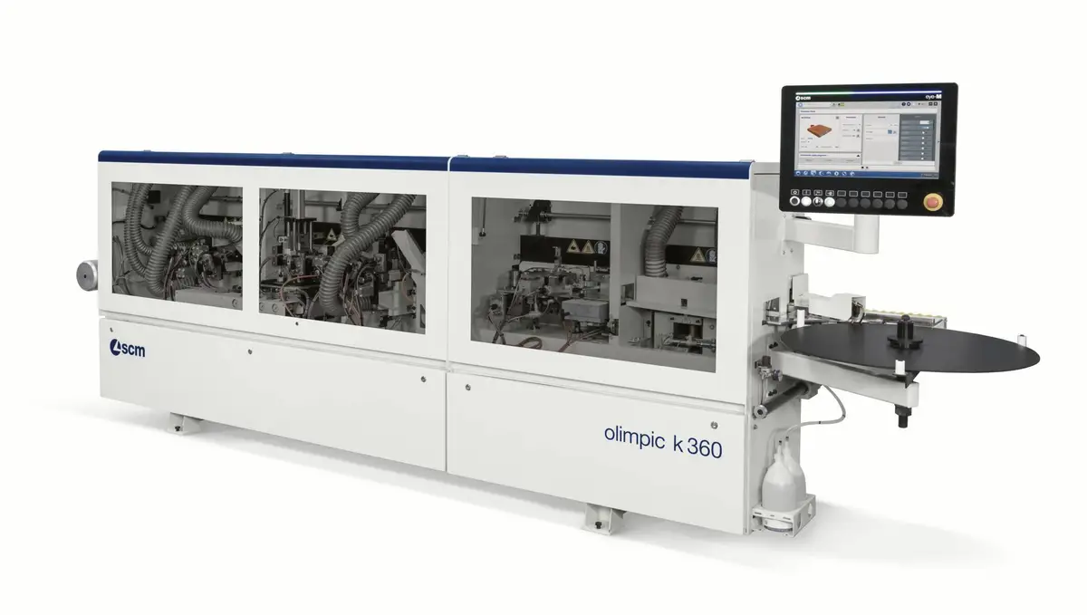 Versatility and high machining quality with the SCM olimpic k 360, the machine with the aim to be the new reference point in the market for entry level edge banders and complete with a rounding unit.
